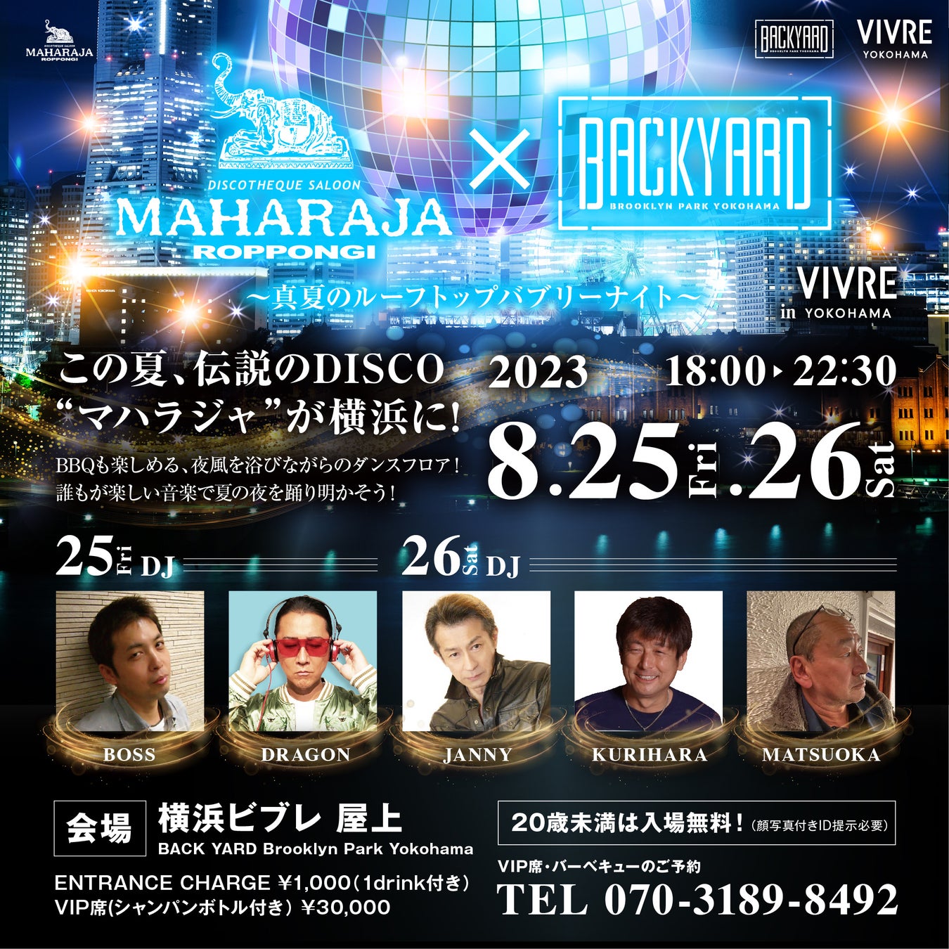 2023.7.11 MAHARAJAとBACK YARDがコラボ!8月25日、26日に「真夏のルーフトップバブリーナイト」開催!